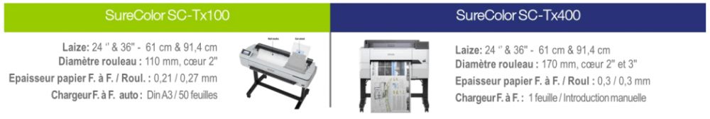 Pour les applications comme le balisage magasin (POS), tous ces traceurs sont éligibles aux contrats Epson Print & Save (P&S) pour des petits volumes d’impression. Comme les SC-T3200, SC-T5200, les SC-T3400 et SC-T5400 sont éligibles aux contrats Epson Print Performance (EPP) pour des forts volumes d’impression.
