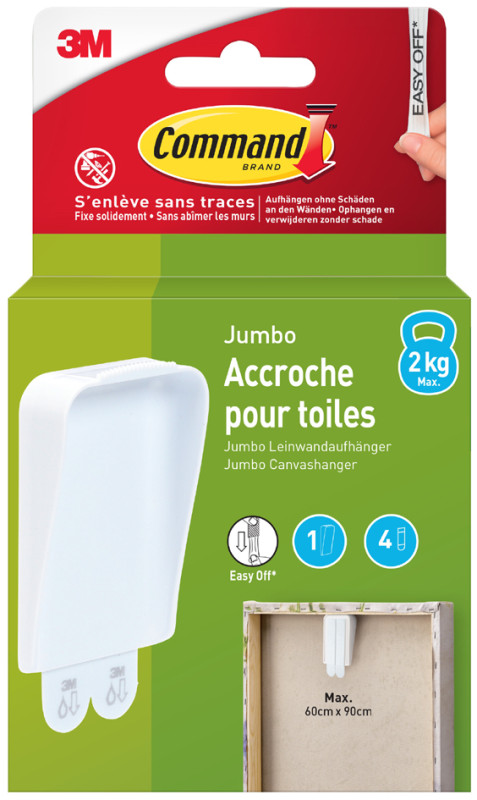 capacité de charge: 1,3 kg, forte adhérence, s'enlève sans, laisser de traces, utilisation simple, plastique, blanc, contenu: 1 crochet + 2 languettes adhésives taille L, (17044FGN),
