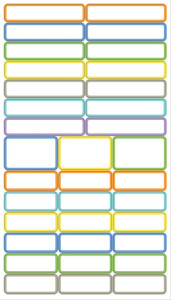 en vinyle adhésif mat, bords colorés, assorti dans les, tailles: 14x (L)46,5 x (H)10 mm, 3x (L)30,5 x 19 mm, 18x, (L)30,5 x (H)11 mm, pour identifier les stylos, contenu: 35 étiquettes sur 1 planche, (17808)