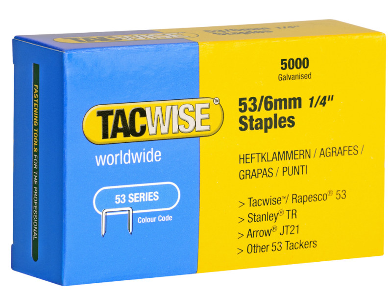 Staples "Type 53" pour les travaux autour de la maison et les applications passe-temps, adapté pour Tacwise Z3-53, Z3-53L, Z3 4-en-1, Hobby 53EL, comprend: 5000 (0450)