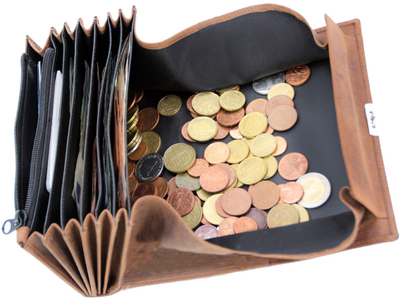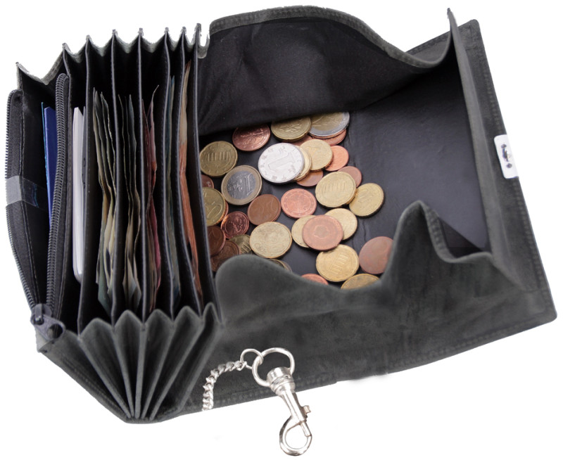 6 compartiments à billets, compartiment pour pièces de, monnaie, compartiment à fermeture à zip, compartiment, pochette au dos, serrure réglable à trois niveaux,, chaînette en métal et mousqueton,, (42198)