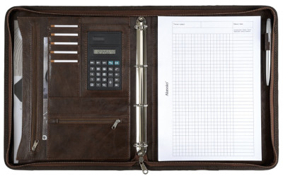 noir, apparence marbrée, compartiment externe pour ranger, les formats A4, mécanisme à anneaux, calculatrice, bloc-note, passants à stylos, compartiment pour ranger les formats A4, 2 compartiments à fermeture éclair, 5 compartiments pour les, cartes de visite (30065)