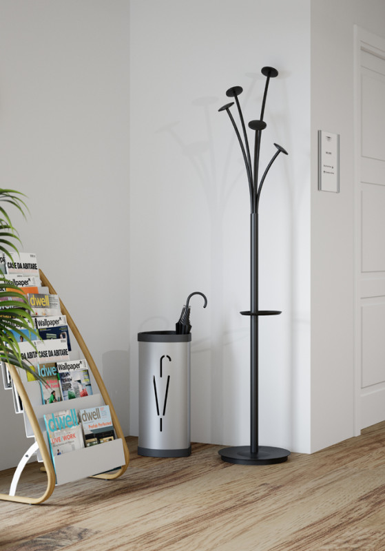 tige en acier, diamètre: 38 mm, socle en ABS, diamètre:, 355 mm, avec 5 patères en ABS, avec un porte-parapluie,, poids: 5,9 kg, (PMFEST N),