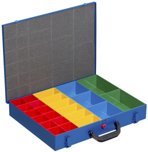 44XH-12L, bleu, en tôle d'acier revêtue de poudre, poignée, en plastique, équipée de 12 godets avec couvercle,, dimensions extérieures: (L)440 x (P)370 x (H)135 mm, dimensions intérieures: (L)430 x (P)325 x (H)130 mm, (454131)