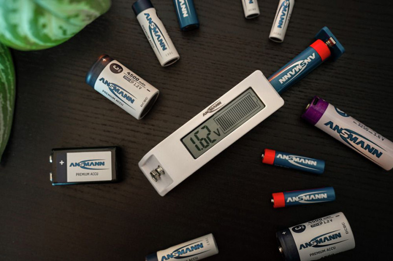 großes Display zur Anzeige der Akku-/Batteriespannung in V,, für Zellgröße: AAAA, AAA, AA, C / D / N / 9V, andere, Rundzellenformate & Knopfzellen, benötigt keine eigene, Batterie zur Stromversorgung, Farbe: weiß/schwarz, (1900-0110)