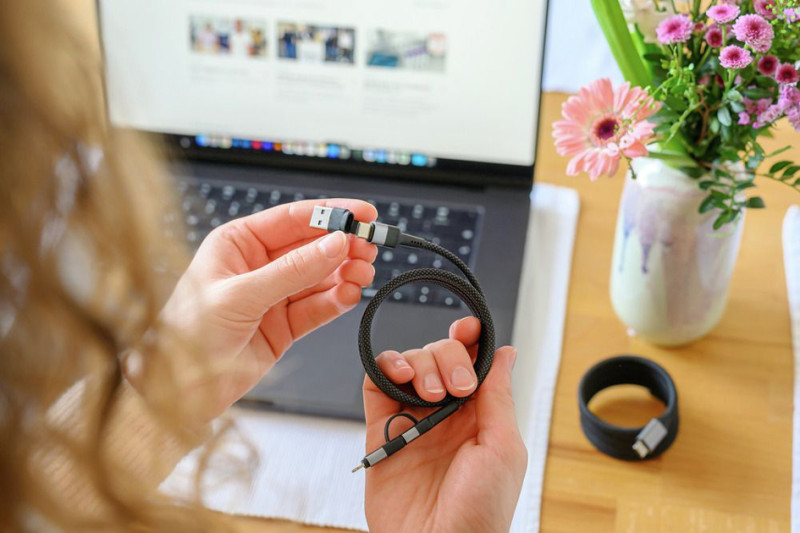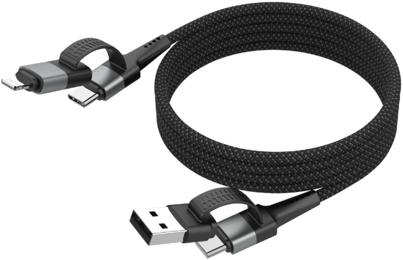 USB-A ou C mâle - USB-C ou Lightning mâle, taux de transfert, 480 Mbps, gaine textile de qualité supérieure, facile à, ranger grâce à la fonction magnétique - sans enchevêtrement,, dans un carton avec perforation euro, (1700-0188)