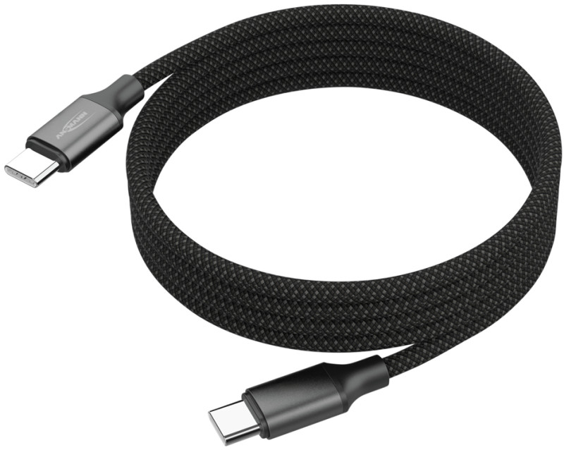noir, USB-C mâle - USB-C mâle, taux de transfert: 480 Mbps,, puissance: 60 watts, gaine textile de qualité supérieure,, facile à ranger grâce à la fonction magnétique - sans, enchevêtrement, dans un carton avec perforation euro, (1700-0186)