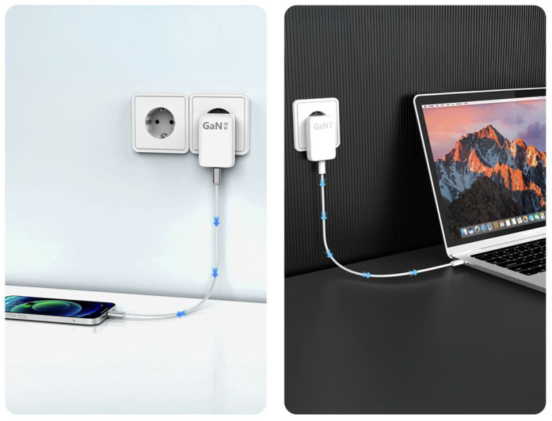 fiche euro, port: USB-C femelle, puissance: 30 watts, entrée, 100-240 V AC, idéal pour les prises derrière les meubles,, technologie Multisafe, protocoles de charge: Power Delivery, Delivery Profil 3 / PPS / Quick Charge 3.0, (1001-0173)