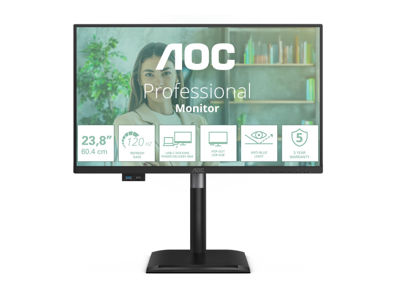 AOC Pro-line 24P4CV - P4 Series - écran LED - USB - 24" (23.8" visualisable) - 1920 x 1080 Full HD @ 120 Hz - IPS - 300 cd/m² - 1500:1 - 4 ms - HDMI, DisplayPort, USB-C - haut-parleurs - noir