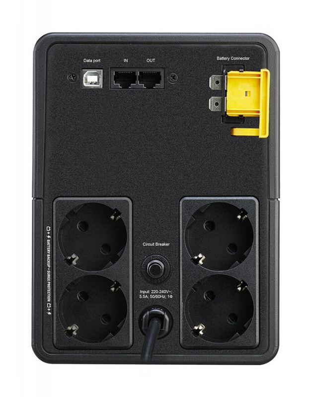 Les voyants LED du panneau avant et les alarmes sonores indiquent facilement l'état de fonctionnement. En cas de coupure de courant prolongée, évitez les risques de perte ou de corruption de données avec le logiciel PowerChute Personal Edition. Corrige instantanément l'alimentation électrique entrante sans utiliser la batterie, ce qui permet d'économiser la batterie pour le moment où elle est le plus nécessaire. La protection des lignes de données de 1 Go protège les périphériques contre les surtensions accédant aux lignes de données via les « portes dérobées ».