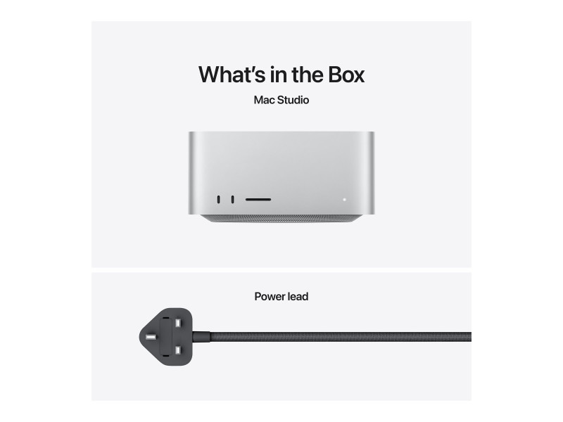 Apple Mac Studio - USFF M3 Ultra - RAM 96 Go - SSD 1 To - M3 Ultra 60-core - Gigabit Ethernet, 10 Gigabit Ethernet, 5 Gigabit Ethernet, 2.5 Gigabit Ethernet, IEEE 802.11ax (Wi-Fi 6E), Bluetooth 5.3 - macOS Sequoia 15.0 - moniteur : aucun - argent