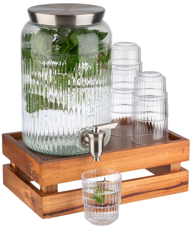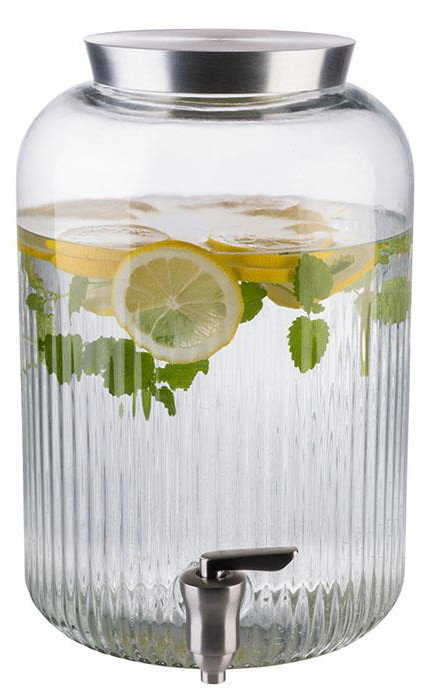 récipient en verre, robinet et couvercle en acier inoxydable, parois épaisses et robustes, large ouverture pour les gros, ingrédients, diamètre: 160 mm, hauteur: 250 mm, (10818),
