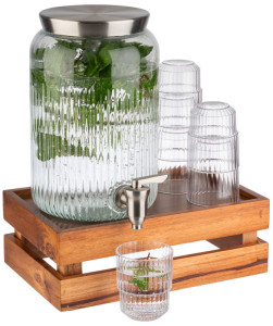 Behälter aus Glas, Zapfhahn und Deckel aus Edelstahl,, dicke, stabile Wände, weite Öffnung für große Zutaten,, Durchmesser: 200 mm, Höhe: 305 mm, (10855),