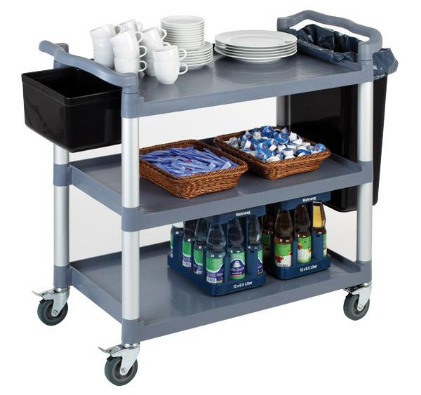 Aluminiumrahmen, Böden aus Polypropylen, 4 feststellbare, Lenkrollen, Traglast pro Boden: ca. 50 kg, einfache, Montage, die Lieferung erfolgt zerlegt, Farbe: schwarz,, Maße: (B)1.080 x (T)500 x (H)960 mm, (11944)