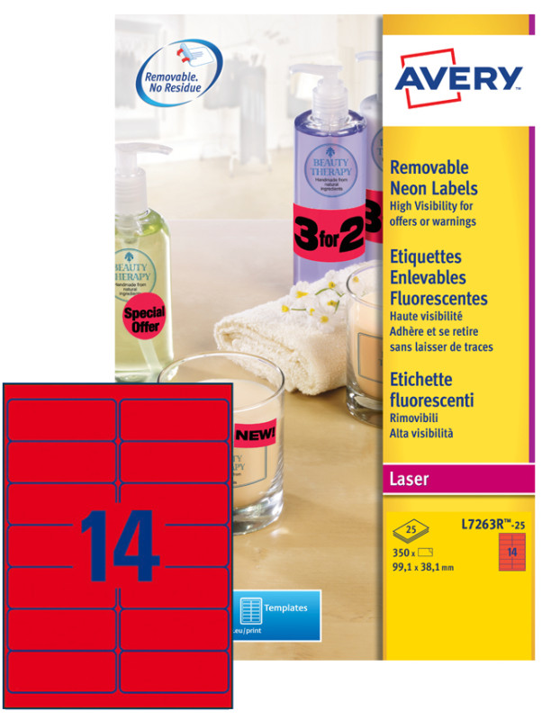 haute visiblilité, enlevables,, pour imprimantes laser, contenu: 350 étiquettes sur 25 feuilles A4, (L7263Y-25.FR),