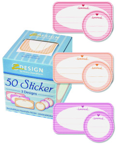 étiquette de menage, inscriptible, enlevable, assorti en 6, designs, avec impression "homemade", de l'assortiment MENAGE, dimensions stickers: diamètre 38 mm, contenu: 50 pièces dans une boîte pratique, (56819)