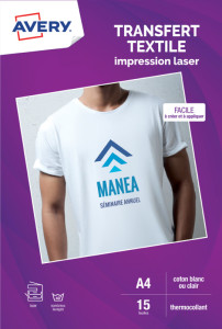 pour textiles en coton blancs ou clairs, pour imprimante, laser, papier transfert avec couchage synthétique, contenu: 15 feuilles A4, (C9403-15),