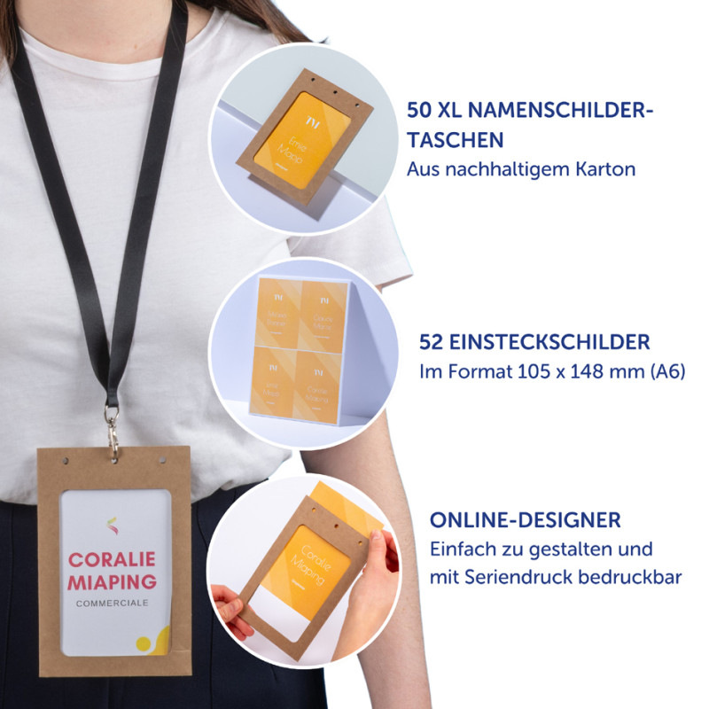 pochette badge en carton kraft et plastique, A6,, étiquette: 190 g/m2, blanc, mat, imprimable,, contenu: 50 pochettes badges et 13 feuilles de 4 étiquettes, (4839XL),