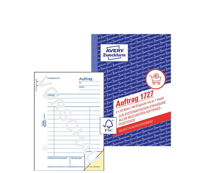 -------------- für den Markt: D / L / A / CH ---------------, 1. und 2. Blatt bedruckt, selbstdurchschreibend -zertifiziert, (1725),