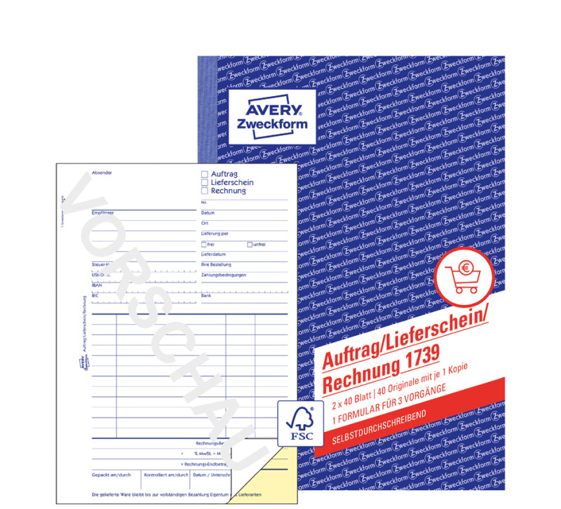 ----------------- für den Markt: D / L / A -----------------, SD, A5, 2 x 40 Blatt, 1. und 2. Blatt bedruckt, selbstdurch-, schreibend, -zertifiziert, (1739),