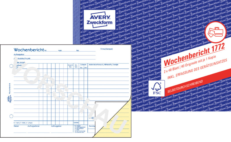 ----------------- für den Markt: D / L / A -----------------, 2 x 40 Blatt, selbstdurchschreibend, 1. und 2. Blatt, bedruckt, -zertifiziert, (1780),