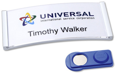 série polar "classic", porte-nom stable, grand confort,, carte blanche, unie, pour imprimante jet d'encre ou laser,, porte-nom en plastique aspect inox, contenu: 10 porte-nom incl. aimant et cartes, (POL30MA66-10DR)