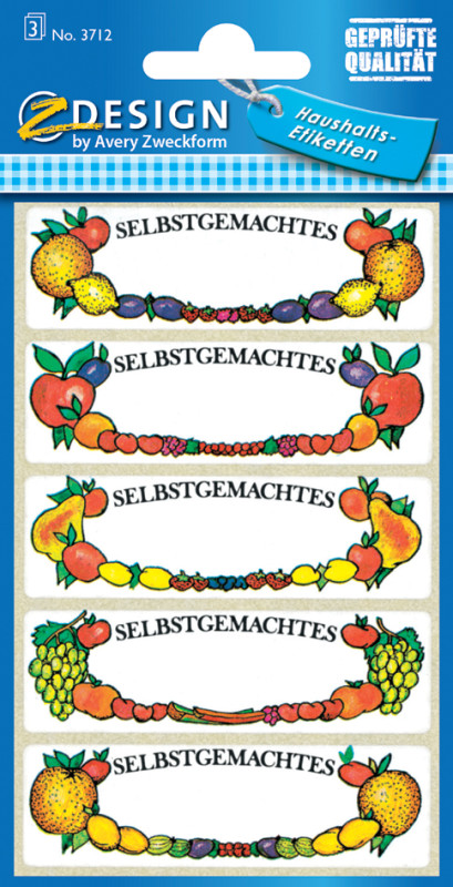 -------------- pour le Marché: D / L / A / CH --------------, "selbstgemacht", en papier inscriptible, réutilisable, contenu: 3 planches de 5 étiquettes, (3712),