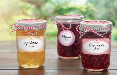 étiquette des ménages, peut être étiqueté, amovible, classés en trois styles, « fait maison avec un cur » avec impression, de la gamme BUDGET, autocollant de diamètre: 38 mm, Contenu: 50 pièces dans un distributeur pratique, (56818)