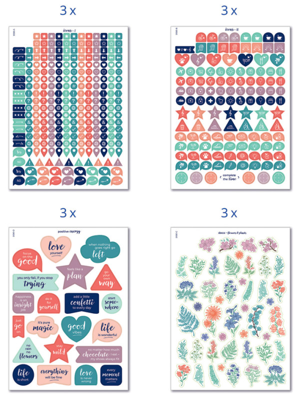 "ICONS & DECO", bloc A5, riveté, avec couverture et dos de, de protection, sticker papier, adhère de façon permanente,, multicolore, optimal pour décorer les agendas, contenu: 1.356 stickers sur 12 feuilles A5, (51061)
