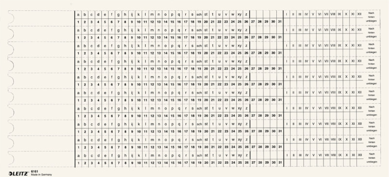 --------------- für den Markt: D / L / A / CH --------------, für ALPHA Hängeregistratur mit Organisationleiste, zum, Einschieben in Organisationsleiste 6160, Vorderseite, Inhalt: 100 Streifen, (6162-00-01)