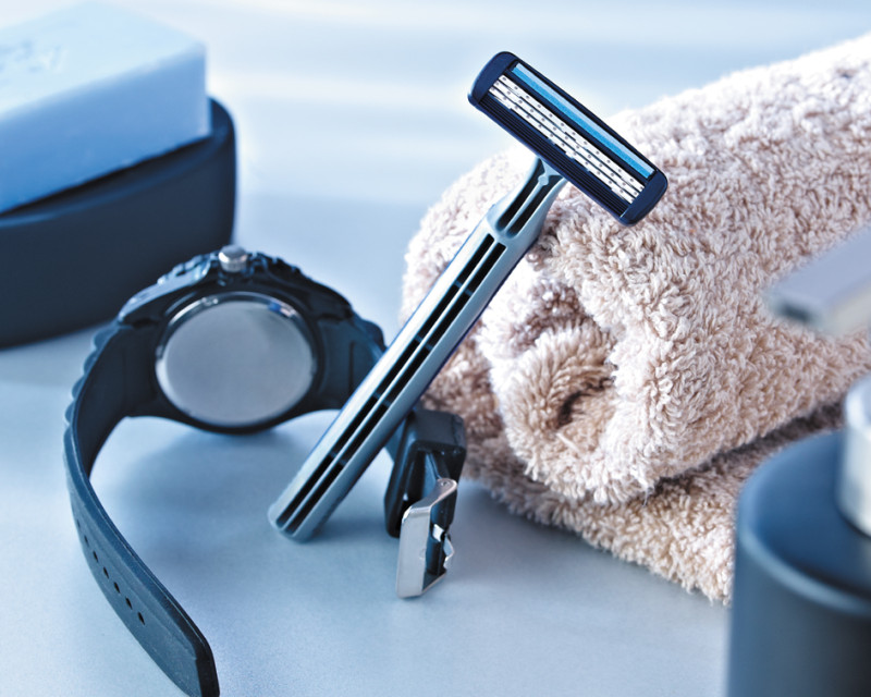 avec 3 lames mobiles et indépendantes, tête pivotante,, bande lubrifiante avec vitamine E et Aloe vera, large, bande protectrice, manche incurvé caoutchouté, sous blister, contenu: 4 pièces, (889692)