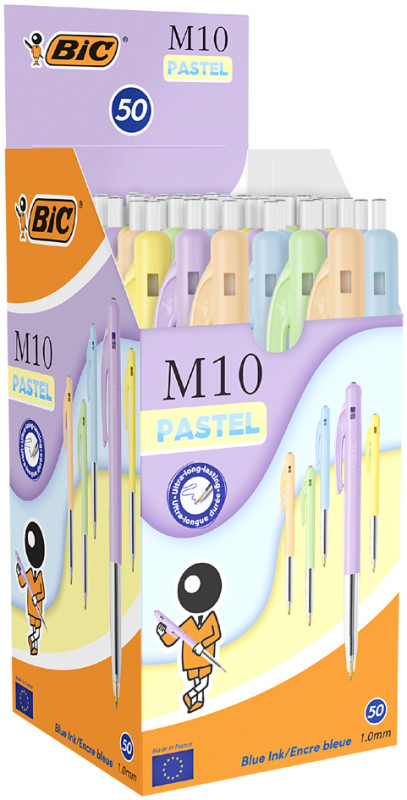 largeur de tracé: 0,4 mm, assorti en 5 couleurs pastel,, zone de préhension transparente, avec clip, pointe, escamotable au moyen du poussoir latéral, indélébile, écrit, aussi sur les papiers gras et thermique, écrit 2 km, (303238)