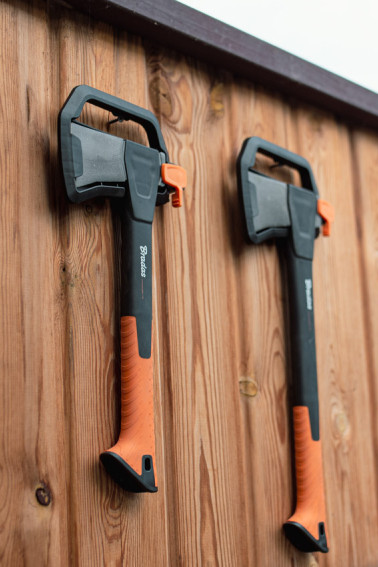 lame en acier trempé, surface de préhension antidérapante, en TPR, matériau composite avec nylon, incl. support mural, en plastique, sur carte blister,, couleur: noir/orange, (KT-SN1100)