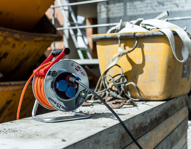 ------------- für den Markt: D / NL / A / L ----------------, Stahlblech Trommelkörper, Kabelfarbe: orange, Kabel, extrem stabil, einsetzbar bis -35 Grad, öl- und UV-beständig, 3 Schutzkontakt-Steckdosen, Durchmesser Trommel: 290 mm, (1198750)