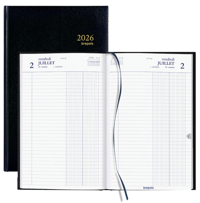 ------------------- pour le marché: F ----------------------, 170 x 270 mm, 1 jour sur 2 pages, réglure euro/cents, relié,, 768 pages, couverture rigide Lima, noir,papier blanc 70 g/m2, avec signet, coins perforés, unilingue français, (0.145.1255.01.6.0)