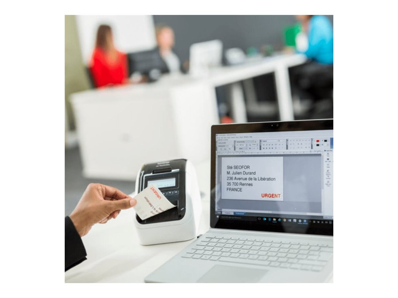 Brother QL-820NWBcVM - Imprimante d'étiquettes - deux couleurs (monochrome) - thermique direct - rouleau (6,2 cm) - 300 x 600 ppp - jusqu'à 110 étiquettes/minute - USB 2.0, LAN, Wi-Fi(n), Bluetooth 5.2 - outil de coupe - blanc, noir brillant