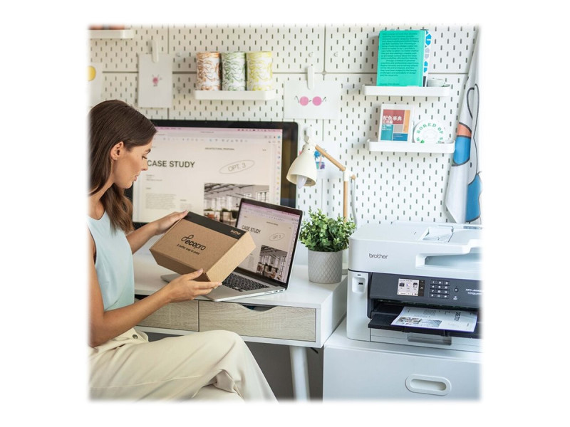 L'imprimante multifonction professionnelle MFC-J5340DWE A3/A4 est conçue pour durer et répondre aux exigences des petites entreprises et des groupes de travail professionnels. Vous pouvez imprimer à la fois des documents aux formats A4 et A3 en toute simplicité, et profiter d'impressions de haute qualité, de vitesses d'impression rapides et de coûts d'impression réduits. Ce multifonction tout-en-un offre des fonctionnalités d'impression, de copie, de numérisation et de télécopie. Imprimez depuis votre bureau, quand vous êtes en réunion, ou même depuis votre smartphone grâce à la connectivité Wi-Fi.