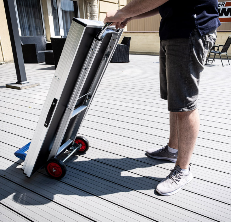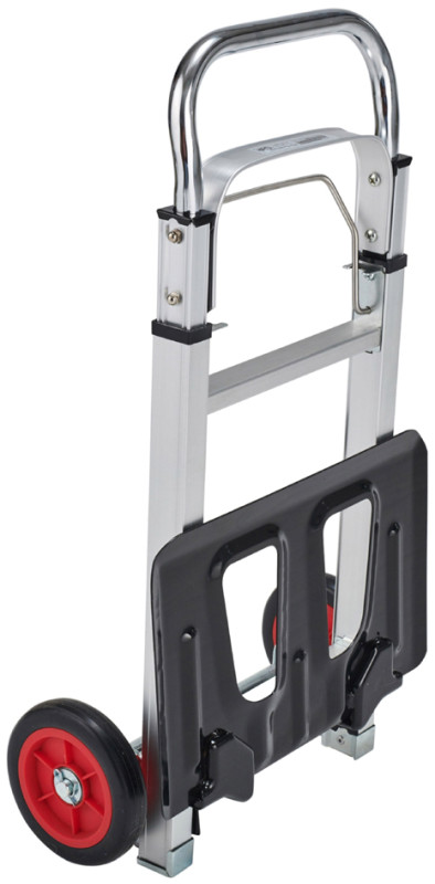 charge: 90 Kg, poignée téléscopique de 720 à 1080 mm,plateau, rabattable rigide en acier, diamétre des pneus: 150 mm,, largeur des pneus: 30 mm, pneus: entièrement en caoutchouc,, roulement à bille, chariot: en aluminium,, (M 099-T)
