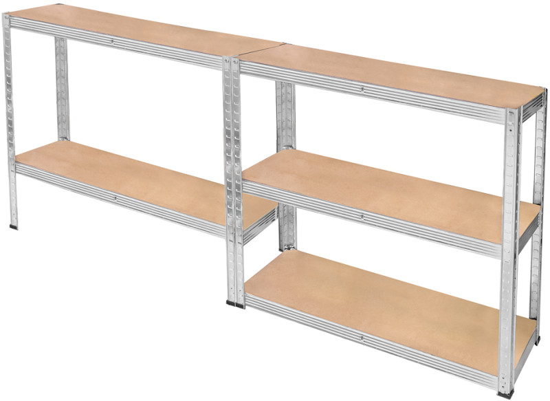 verzinkter Rahmen mit 6 mm Dicke, Kunststofffüße,, 10 MDF-Einlegeböden mit 4 mm Dicke, Tragkraft: je 875 kg,, schraubenlose Montage, Maße: (B)900 x (T)300 x (H)1.800 mm, beinhaltet: 2 Stück, (M99510)
