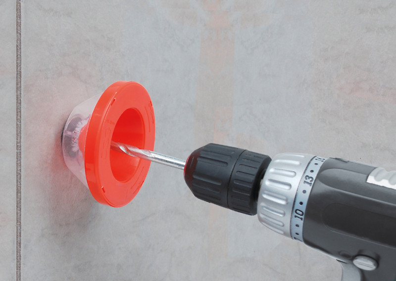 aus Kunststoff, einfach Aufsteckteil auf den Steinbohrer, setzen & staubfrei bohren, für Bohrer mit einem Durchmesser, von 4 - 10 mmm, aus Kunststoff, Farbe: rot/transparent,, Maße: (B)95 x (T)95 x (H)45 mm, (M12498)