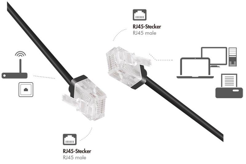 schwarz, Durchmesser: 2,8 mm, flexibler & weicher Kabel-, mantel, kleiner Biegeradius, 2x RJ45 Stecker (extra kurz),, Leiter aus Reinkupfer, Steckerkontakte vergoldet,, ungeschirmt, mit Knickschutz, (CQ3093U)