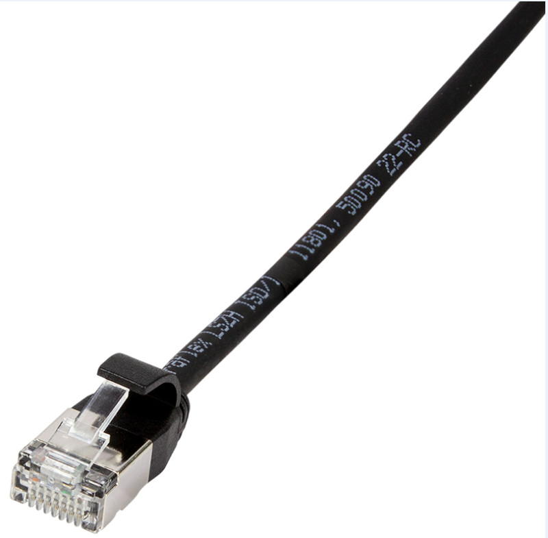 SlimLine, AWG 32/7, Kupferadern, extra dünn, sehr weicher &, flexibler TPE Mantel, Stecker & Kabel geschirmt (PiMF),, Haube vernickelt, vergoldete Kontakte, Farbe Knickschutz-, tülle: grau, extra kurze RJ45 Stecker, (CQ9062S)
