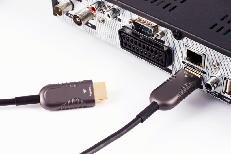 Connecteur HDMI - HDMI Une prise, les signaux multimédias par le câble hybride optiques actifs übertägt de matériau de bouchon sans perte: alliage de zinc, plaqué or, la surface de contact: plaqué or Pins, capots: moulé avec le protecteur de câble (BS30-01075)