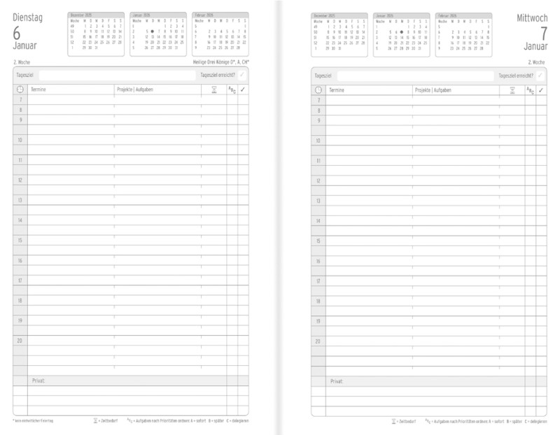 Wochenkalender: 1 Woche/2 Seiten, 135 x 210 mm, Hardcover,, Lederimitat, schwarz, Magnetverschluss, Inhalt: Tagespläne,, Jahresplan, Folgejahr, Notizblätter, Feiertage, Ferienplan, (50806),