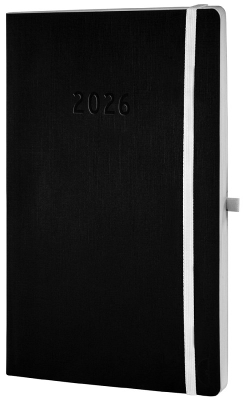 135 x 210 mm, Wochenkalender: 1 Woche/2 Seiten, Softcover,, Gummizugverschluss, Stiftehalter, Einmerkband, Inhalt:, Wochenpläne, Jahresplan, Folgejahr, Notizblätter, Feiertage,, Ferienplan, Farbe: schwarz, (50926)