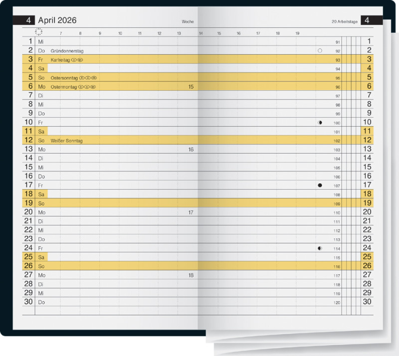 ------------------ für den Markt: D ------------------------, Blattgröße: 87 x 153 mm, Kalendarium: 1 Monat auf 2 Seiten,, Gesamtumfang: 15-teilig, Druck: grau/gelb, Einband: Kunst-, stoff-Einband, Faltkalender, Kalendereinlage auswechselbar, (7045472906)