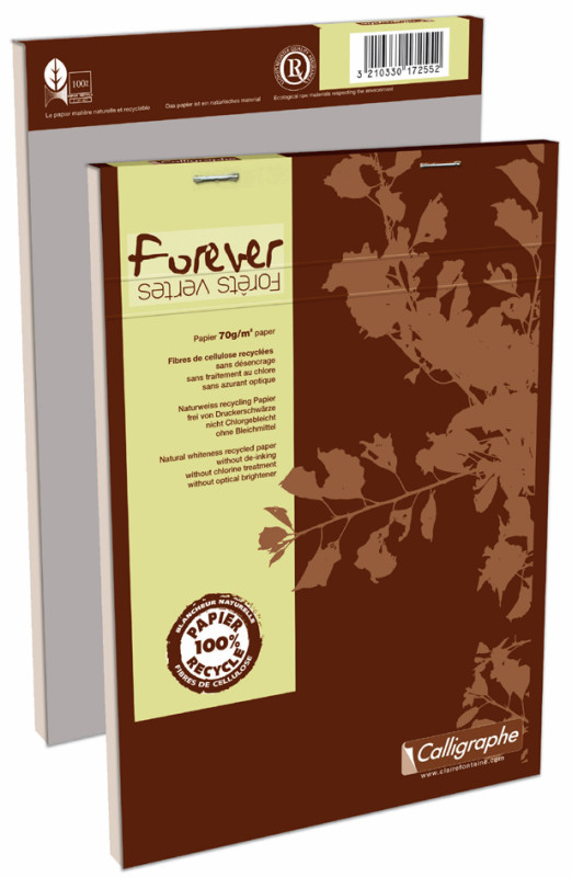 en papier recyclé, 70 g/m2, blauer Engel,, dimensions: 148 x 210 mm, agrafé en-tête, en paquet de 5 pièces, (17255C),