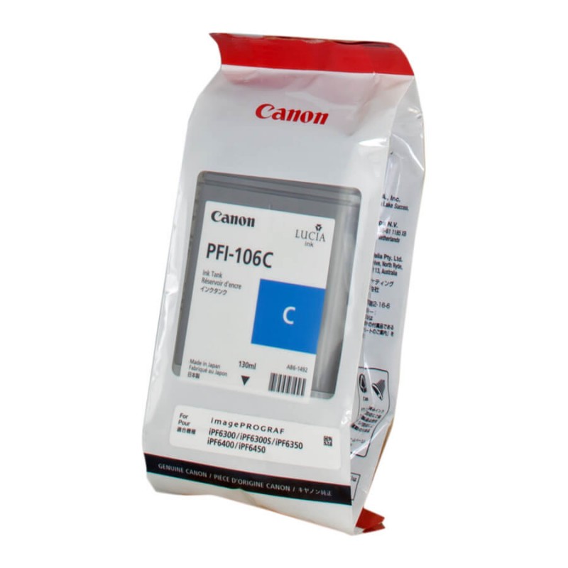 Canon PFI-106 C - 130 ml - cyan - originale - réservoir d'encre, cartouche d'encre pour imprimante grand format imagePROGRAF iPF6300, IPF6300S, iPF6350, iPF6400, iPF6400SE, IPF6450