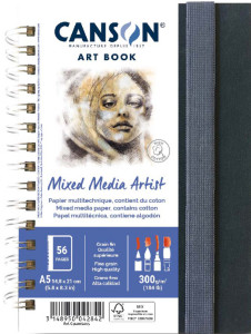 56 pages, 148 x 210 mm, format portrait, 300 g/m2, grain fin, haute teneur en coton, double spirale sur le grand côté,, couverture rigide, avec bande élastique de fermeture, pour, toutes les techniques humides ou sèches, (C31200L005)