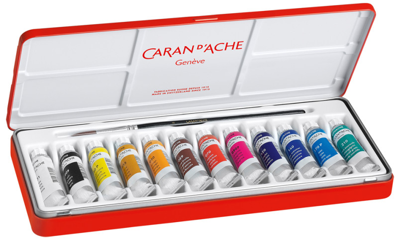 gouache avec liant naturel végétal, sans plastifiant,, hydrosoluble, forte concentration en pigments, couleurs, lumineuses, bonne tenue à la lumière, contenu: 8 tubes de, de peinture de 10 ml, couleurs assorties, 1 pinceau,, (2001.408)
